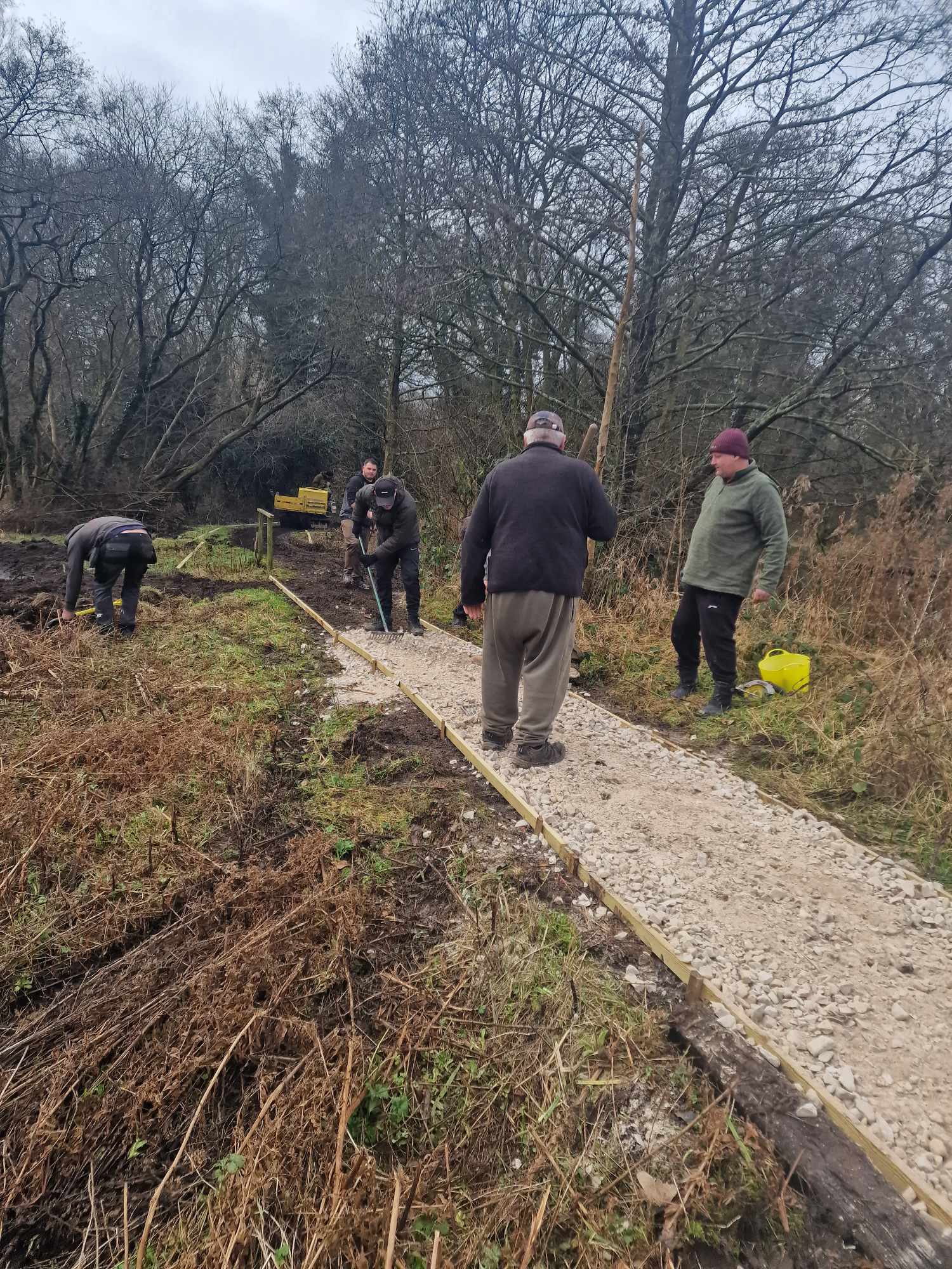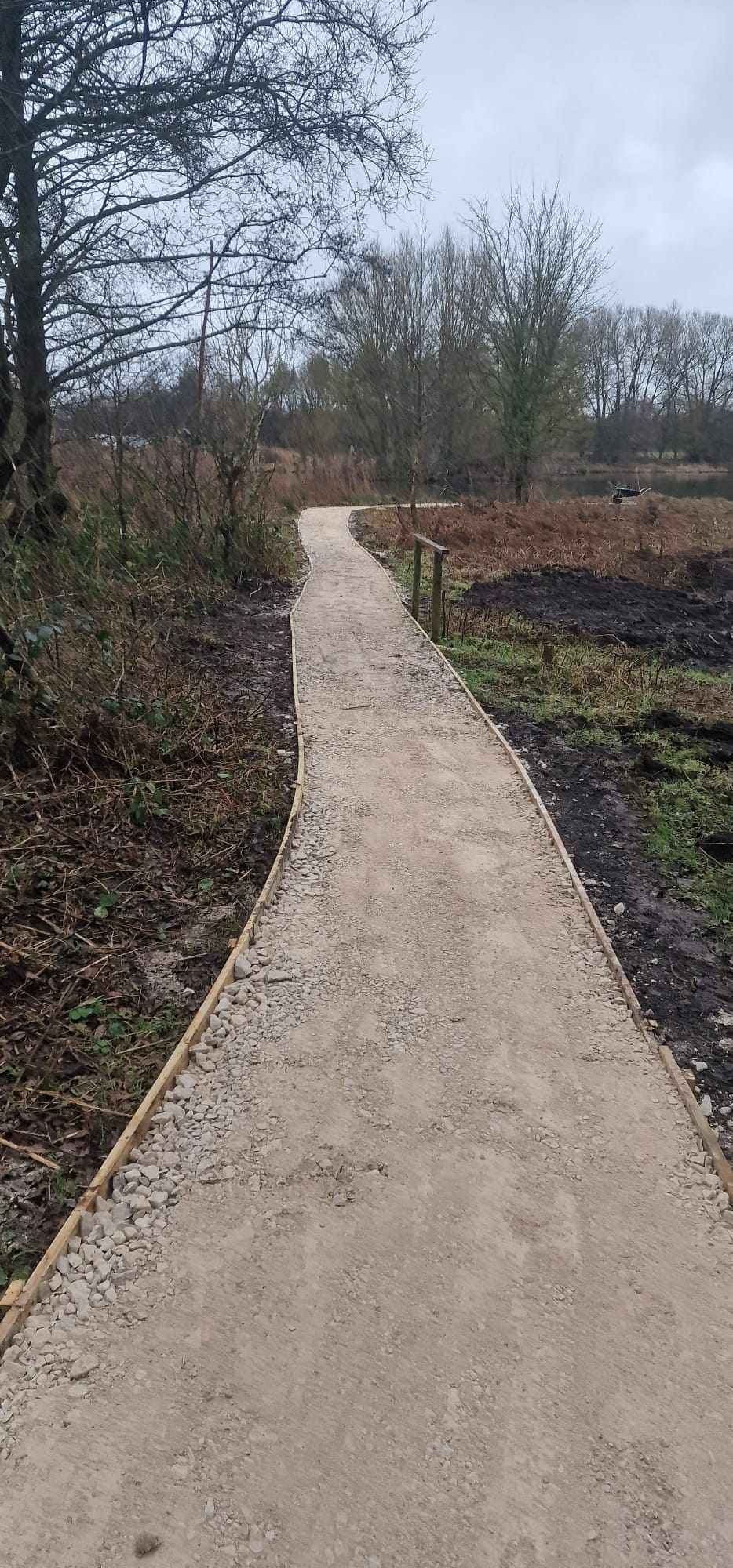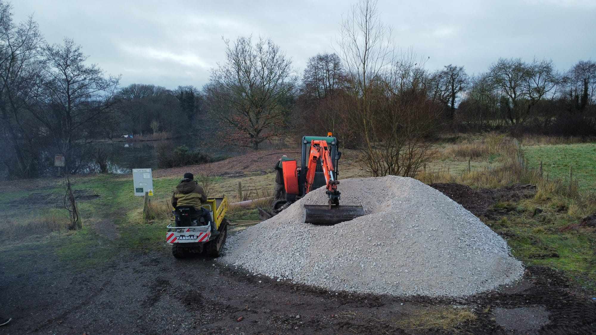 Today committee members and bailiffs have been out working, the aim to improve the access around the Turf pool, removing all the muddy paths and replacing with timber edged, mot based paths that have been levelled and compacted down this starts at peg seven all the way round to peg 17. Not only will it be easier for anglers to get their barrows around to the pegs but because it is now a completely level and a wider path it now makes it safe for members who may be less mobile. We started at 7.30 this morning and lost the light this afternoon, peg 7 and 8, to the car park still needs finishing so bare with us we have left it as safe as possible. Unfortunately we ran out of stone 40 ton was used. Spencer has now ordered another 20 ton to finish and top up some of the pegs. Gary provided two dumper trucks and a digger to make light work of this, big thanks to Gary because without him this would have not been possible.